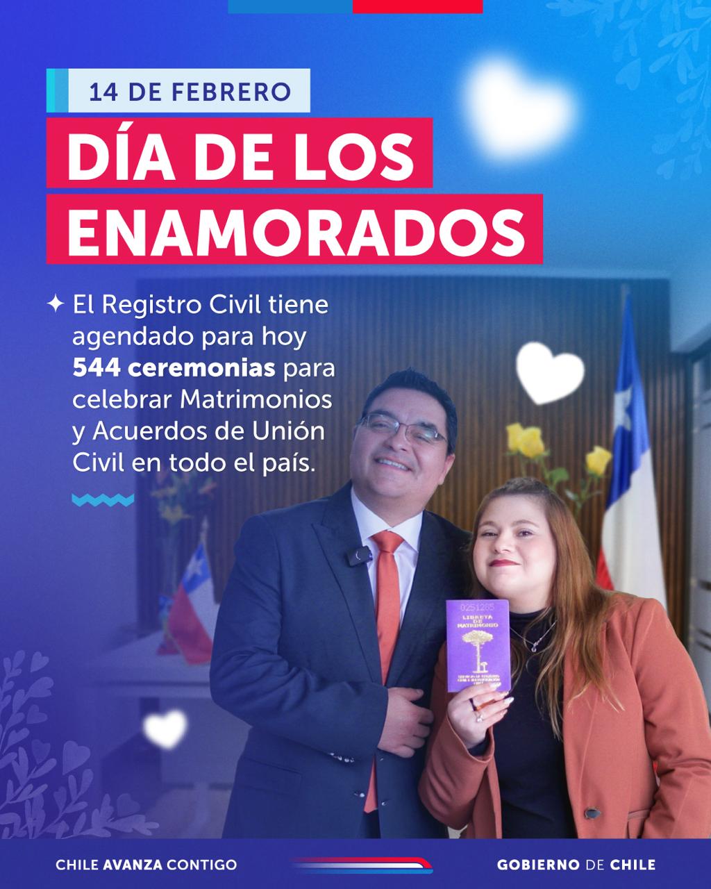 A nivel nacional, serán 544 parejas las que formalizarán su unión este 14 de febrero: 516 matrimonios y 28 AUC, destacando la alta demanda que generan las fechas simbólicas para las parejas.