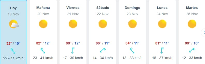 Asimismo, y de acuerdo al pronóstico del tiempo, que entrega Meteored, las máximas de Tocopilla y Ollagüe alcanzarían a los 21°C; la Capital Regional y Taltal, 22; Mejillones 23°C, Calama, 26°C; San Pedro, 29°C y Sierra Gorda, 32°C.