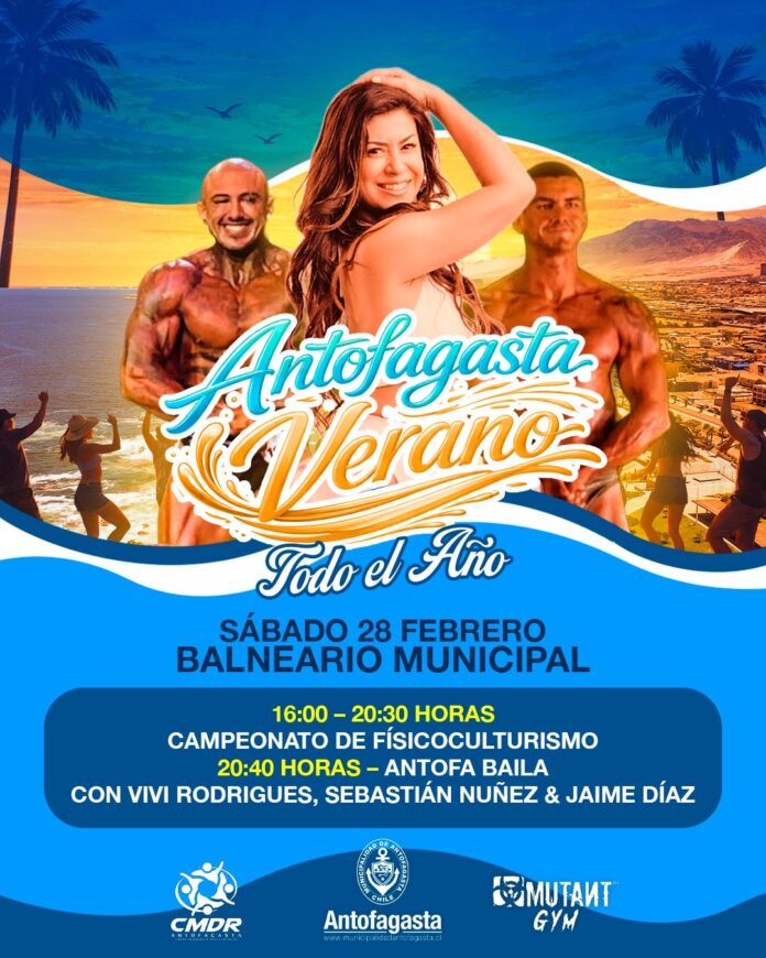 Una completa jornada de deporte y entretención se vivirá este sábado 28 de febrero con la actividad ” Antofagasta, Verano Todo el Año”, iniciativa que reunirá a la comunidad en el Balneario Municipal con un torneo de fisicoculturismo y una gran bailatón abierta a todo público.