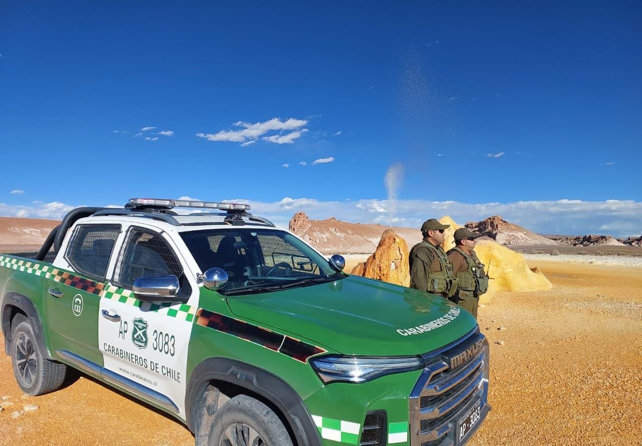 Así lo dio a conocer el Mayor Mario Carreño, Comisario de la 2ª Comisaría de San Pedro de Atacama (F), quien señaló que el personal fronterizo de esa Unidad, con el apoyo del Retén Fronterizo Temporal de Socaire, desarrolla labores permanentes de vigilancia y patrullaje en el sector del Paso No Habilitado de Huaitiquina y sus Géiseres, un área de alta complejidad geográfica.