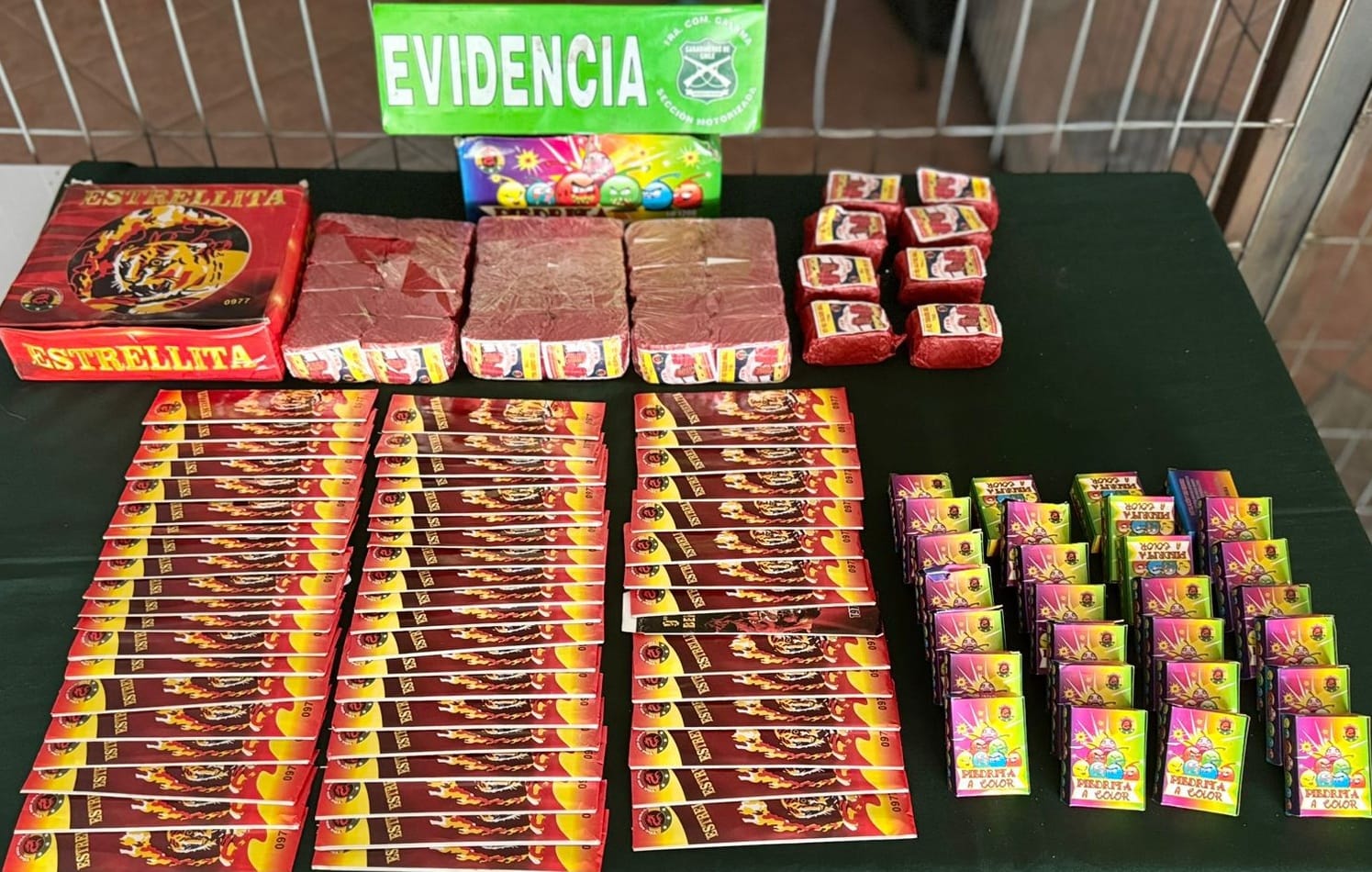 La detenida es una mujer, extranjera, de 43 años, a quien se le incautan un total de 128 fuegos de artificio.
