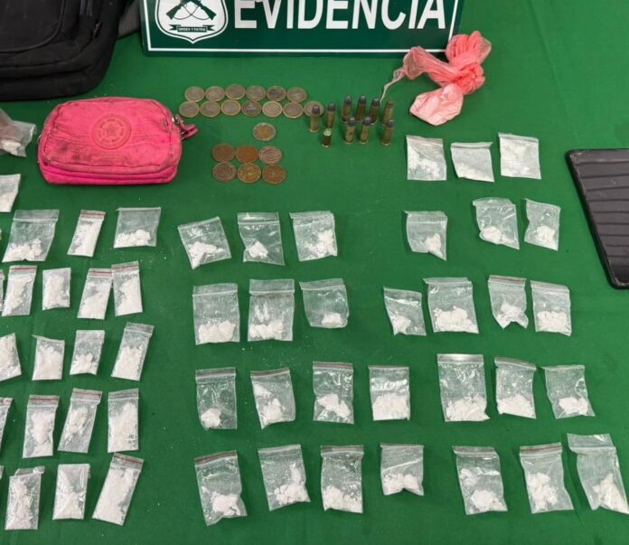 El individuo, un hombre de 25 años, extranjero y en situación migratoria irregular, portaba un bolso en cuyo interior se encontraron 56 bolsas plásticas contenedoras de clorhidrato de cocaína, droga dosificada y lista para su comercialización. Además, se incautaron 10 municiones.