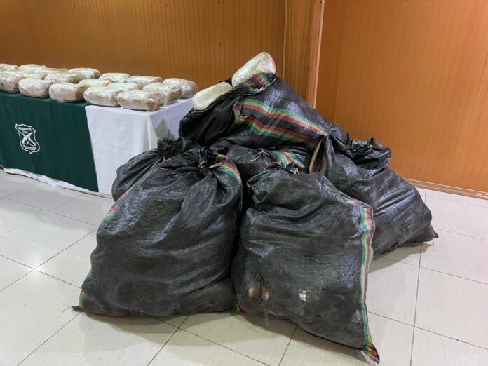 El hecho se registró cuando Carabineros acudió hasta un domicilio ubicado en calle Licanantay, luego de recibir un llamado alertando sobre un robo en desarrollo. Al llegar al lugar, el personal policial verifica la presencia de numerosos bultos de color café con cinta adhesiva que habían sido abandonados en el exterior del inmueble, desde los cuales emanaba un fuerte olor atribuible a marihuana.