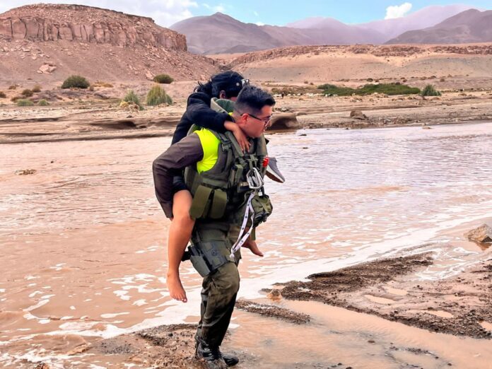 Carabineros del Retén Ascotán (F) realizó un exitoso rescate, al sacar del cauce a una familia que quedó atrapada debido a la crecida del Río Loa, en el sector Taira, comuna de Ollagüe.