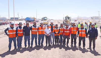 La ministra de Obras Públicas, Jessica López, junto al delegado de la provincia del Loa, Miguel Ballesteros, y al alcalde de Calama, Eliecer Chamorro, dieron el vamos a la construcción de las obras de mejoramiento de la circunvalación de la Ruta 25 y de la Ruta Internacional 21-CH que tienen por objetivo mejorar la calidad de vida de los habitantes de Calama y potenciar el desarrollo de la región.