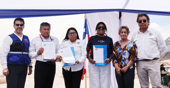 La ministra de Obras Públicas, Jessica López, encabezó la ceremonia de entrega de los primeros tres derechos de agua no extractivos a la Comunidad Atacameña de Toconao, en el marco de la implementación de la reforma al Código de Aguas de abril de 2022, que introdujo este nuevo tipo de derechos de aprovechamiento de aguas que mantiene las aguas en las fuentes naturales, con uso en su propia fuente, para fines de conservación ambiental, turismo sustentable, recreacional o deportivo.