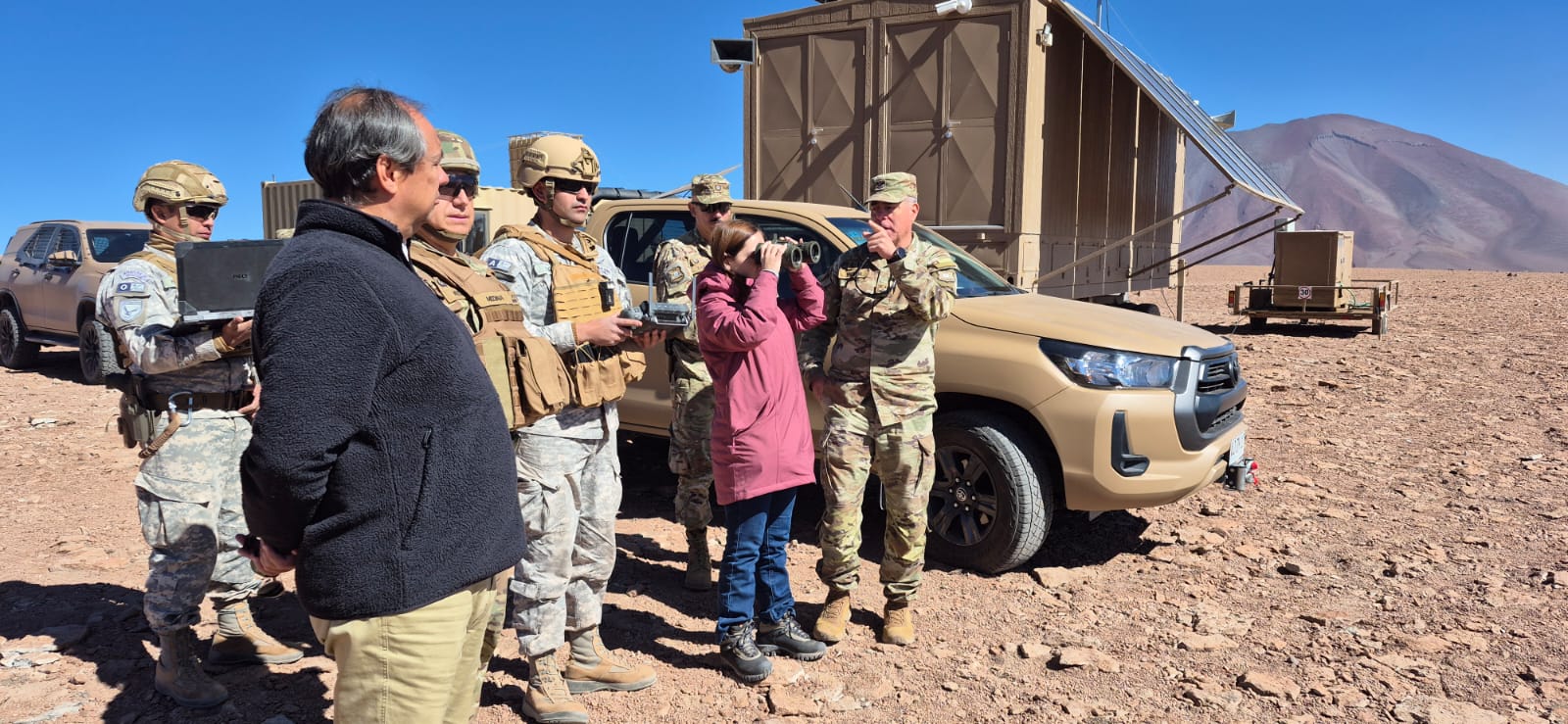 Continuando con el plan de Fortalecimiento Fronterizo impulsado por el Gobierno del Presidente José Antonio Kast, la delegada presidencial regional de Antofagasta, Katherine López Ramírez y el delegado presidencial provincial de El Loa, Cristian Ramírez Sepúlveda, se desplegaron por la frontera para conocer los avances en esta materia y acompañar a la I División de Ejército para conocer sus labores diarias en el contexto de los avances del plan de Fortalecimiento Fronterizo.