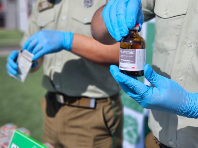 Como resultado de la pesquisa se logró la incautación de 57 frascos de 100 ml. de ketamina, ⁠34 bolsas de nylon contendedoras de 37 gramos y 100 miligramos de la droga, tres vehículos y dinero en efectivo, entre otros elementos.