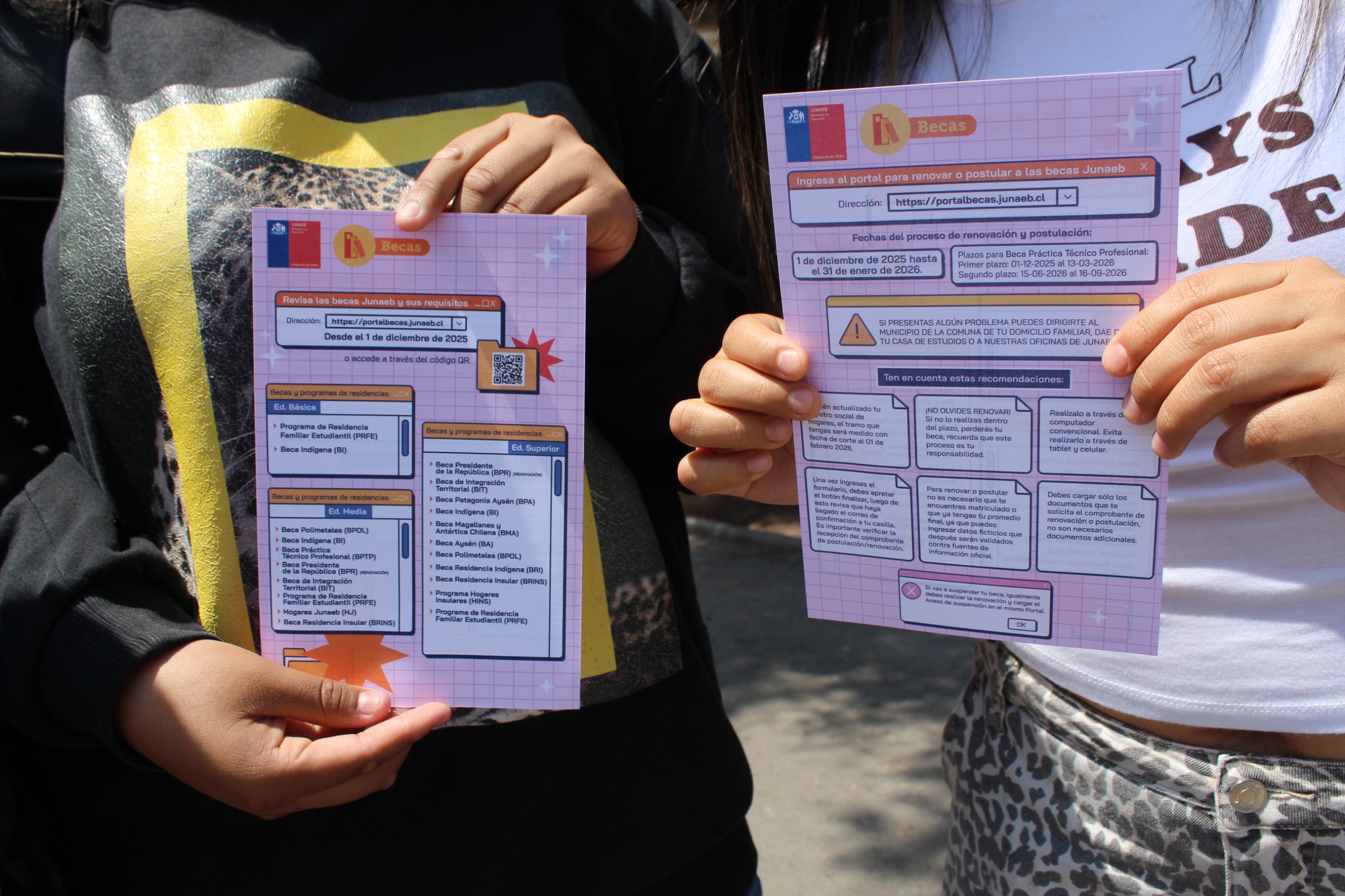 “Los invitamos a que ingresen a nuestro Portal Unificado de Becas en nuestro sitio web institucional para que puedan realizar hasta el 31 de enero los procesos de renovación y postulación a las becas de Junaeb. De esta manera podrán asegurar el proceso y no tener problemas en el futuro”, aseguró Nellie Miranda Eldan, directora regional de Junaeb en Antofagasta.