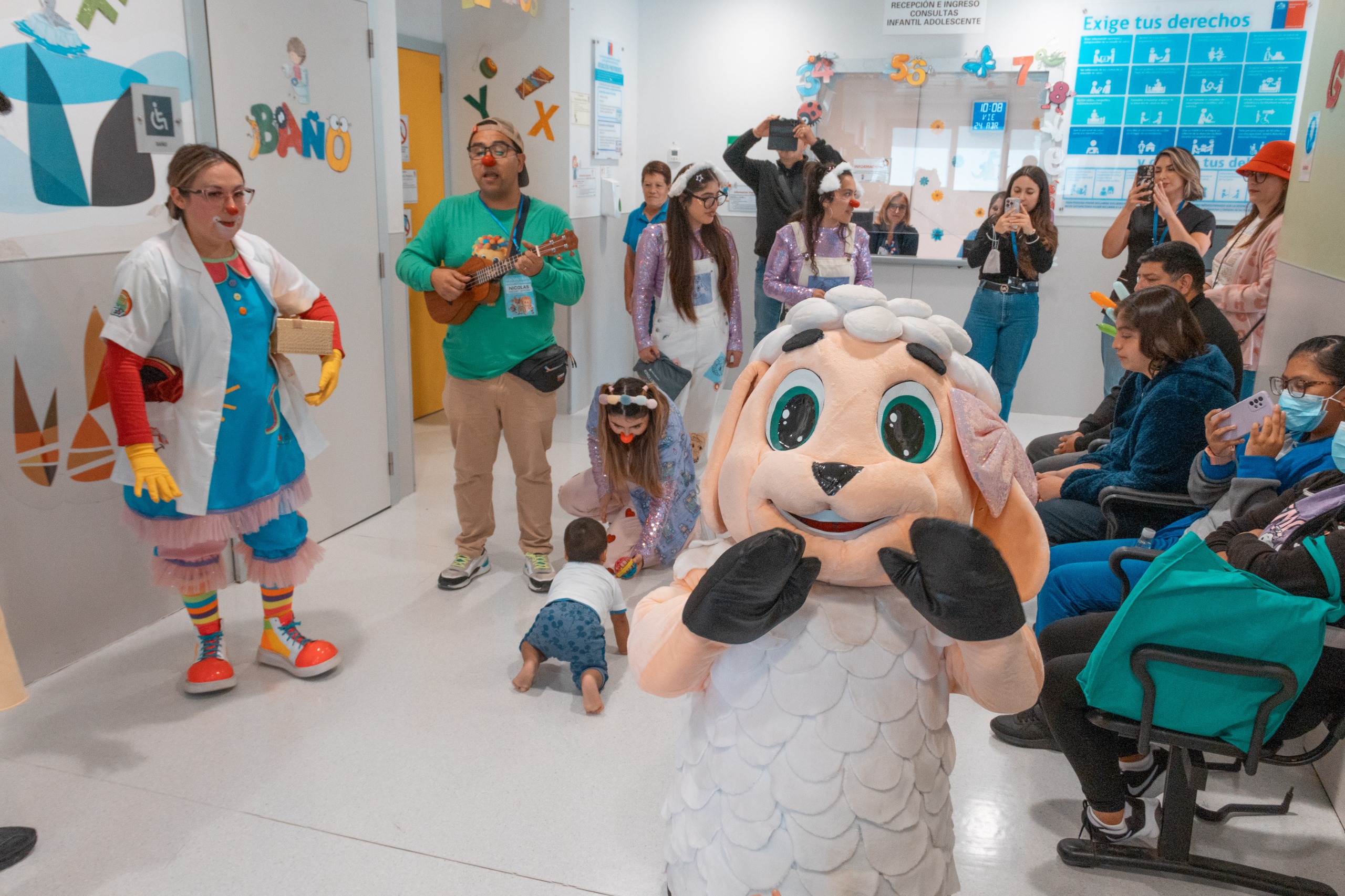 Patrulla del Rey es el nombre de la fundación que, durante toda una mañana, alegró a los pacientes pediátricos del Hospital Regional de Antofagasta (HRA). La jornada para los más peques tuvo jóvenes disfrazados, el corpóreo de una traviesa obejita, figuras hechas con globos, alegres cantos y entretenidas coreografías.