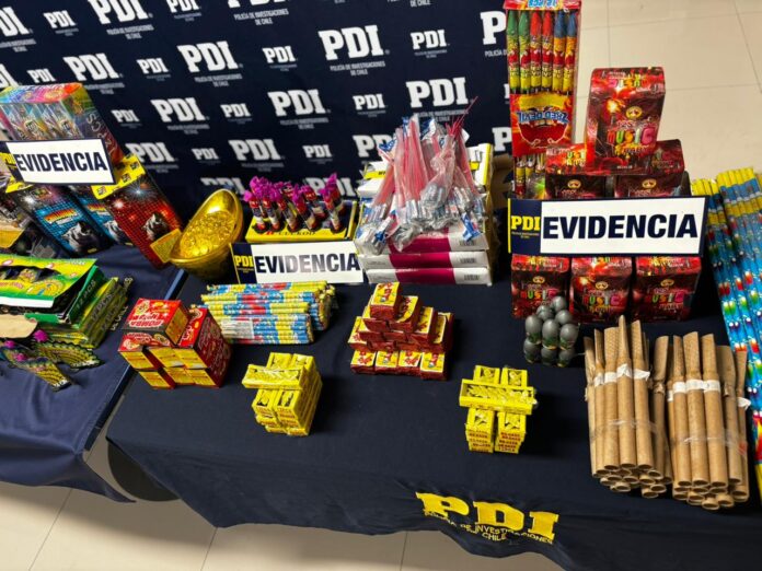 Detectives de la Agrupación de Delitos Sexuales de la Brigada de Investigación Criminal, en conjunto con la Brigada Investigadora de Robos Calama, realizaron un procedimiento que permitió retirar del mercado una importante cantidad de fuegos artificiales y elementos pirotécnicos, avaluados en $6 millones, en distintos puntos de esa ciudad.