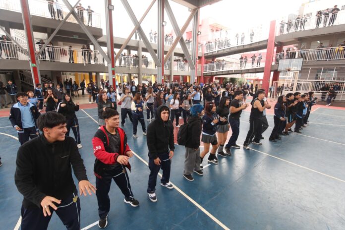 Durante el “recreo entretenido” realizado en el Liceo “La Chimba” los alumnos disfrutaron de baile y actividad física fomentando valores como hábitos de vida sana y compañerismo.